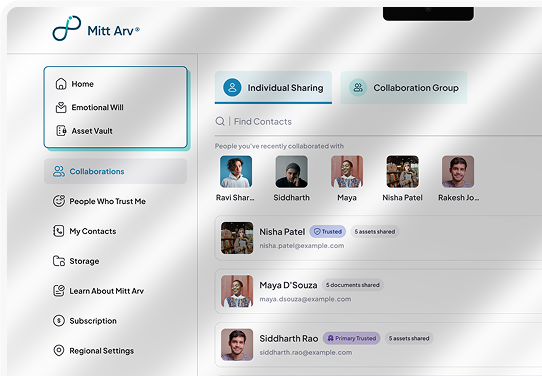 Mitt Arv’s Asset Vault lets you list and share all your financial and important information with your trusted ones at a time you choose.