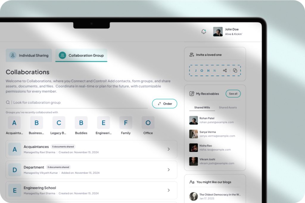 Share your asset listings in real-time with family, friends, and trustees providing awareness and guidance when it matters most.
